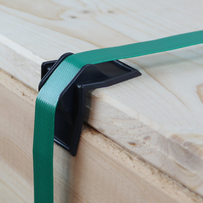 Geeignet für Palettenware aus Stein oder Holz und weitere Produkte, die mit Stahlumreifungsband gesichert werden. Besonders sinnvoll, wenn Bandkontakt zu optischen Beeinträchtigungen führen kann.